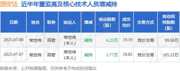国安达: 7月8日高管常世伟减持股份合计6.25万股